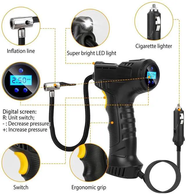Digital Display & LED Lighting: Equipped with a high-brightness and high-precision display screen,you can easily check the tire pressure and pre-set the pressure value. The LED lighting makes operation more convenient in darkness.