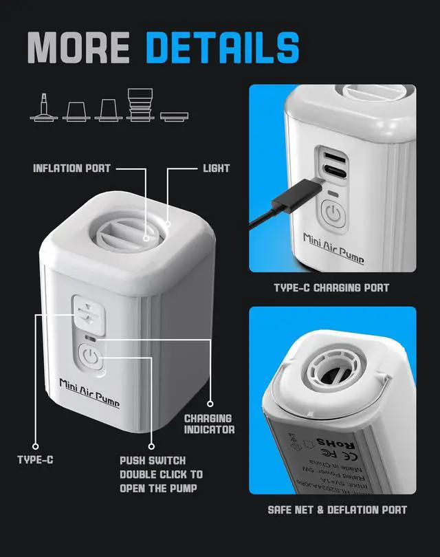 Compact and Portable Design: Our mini air pump is designed for maximum portability, fitting comfortably in your bag for easy transport. Whether you need a travel pump or a compact air pump for inflatables, this is your go-to solution for outdoor activities