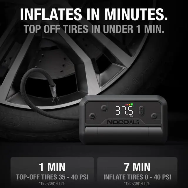 Air AL5: Cordless Tire Inflator Portable Rechargeable Air Compressor with USB-C 17 LPM Inflates 040 PSI in 7 Minutes Digital Gauge + Auto-Shutoff For Tires up to 31-Inches