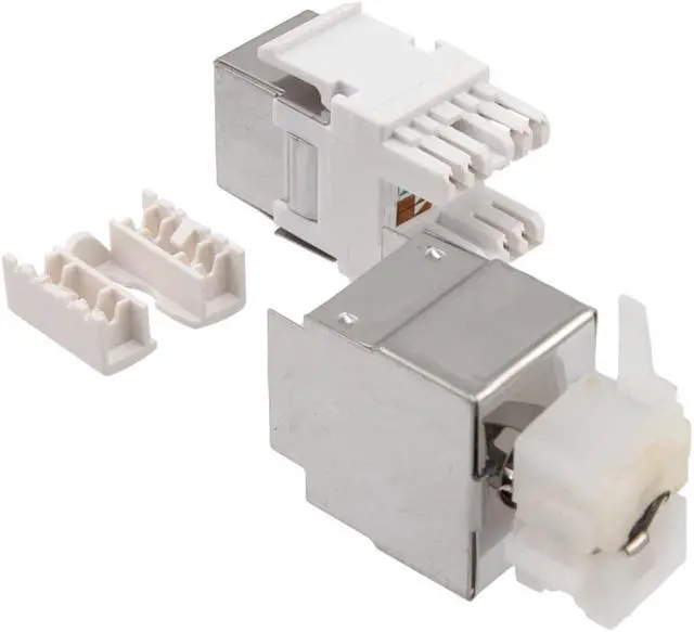 The NavePoint Keystone Jack coupler is ideal for connecting Ethernet assemblies in office, A/V, home, and server room situations. The RJ45 female Keystone Jack is of standard size and recommended for use with solid conductor 23AWG or 24AWG into standard patch panels, wall plates, or surface mounts with keystone blanks. This Shielded style jack offers maximum protection from EMI/RFI interference.
