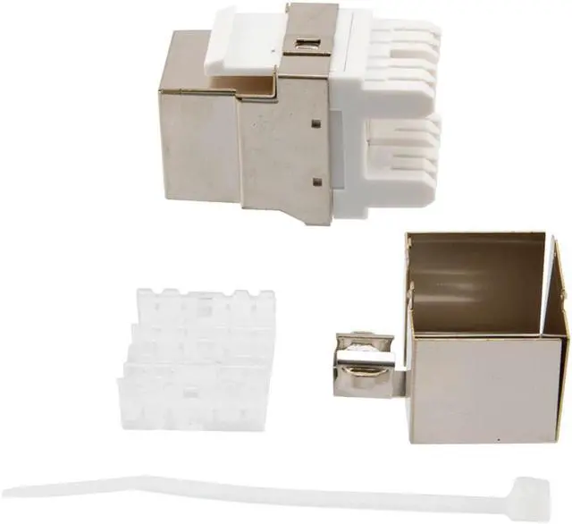 The NavePoint Keystone Jack coupler is ideal for connecting Ethernet assemblies in office, A/V, home, and server room situations. The RJ45 female Keystone Jack is of standard size and recommended for use with solid conductor 23AWG or 24AWG into standard patch panels, wall plates, or surface mounts with keystone blanks. This Shielded style jack offers maximum protection from EMI/RFI interference.