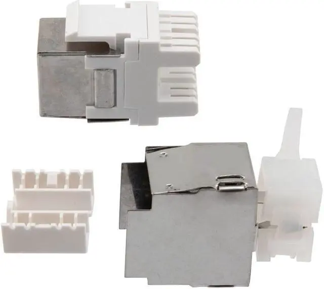 The NavePoint Keystone Jack coupler is ideal for connecting Ethernet assemblies in office, A/V, home, and server room situations. The RJ45 female Keystone Jack is of standard size and recommended for use with solid conductor 23AWG or 24AWG into standard patch panels, wall plates, or surface mounts with keystone blanks. This Shielded style jack offers maximum protection from EMI/RFI interference.