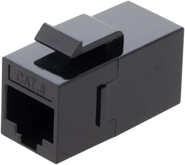 This CAT6 inline coupler is ideal for easy coupling of cables with no tools or punch down required. This black CAT6 inline coupler allows for connecting two cables for extending the overall length of the cable. This Category 6 coupler has an easy snap-in retaining clip to ensure a secure and corrosion-free connection.