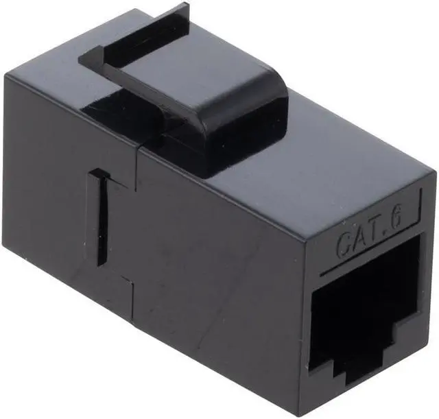 The NavePoint keystone pass through coupler is ideal for connecting Ethernet assemblies in office, A/V installation, home, and server room applications. The CAT6 UTP coupler is black in color and has front/rear end female RJ45 contacts. This economical black keystone inline coupler is the perfect solution for data communication and LAN wiring.