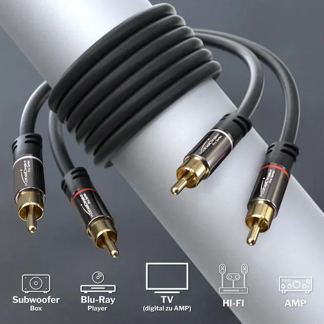 Immerse yourself in pure audio pleasure with KabelDirekt RCA/phono cables. Experience ultimate performance combined with premium materials and maximum build quality. And enjoy total peace of mind knowing that every cable is put through multiple functionality tests before being packed.