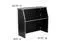 Take the party anywhere with this black laminate portable, folding bar table. A portable bar is a must for any traveling event coordinator. With two surfaces, this design provides a perfect space for prep and presentation and the shelf holds up to 50 lbs. Perfect for hotels, conventions, conferences, weddings, outdoor events and in house. They need relatively little storage space when they're not in use. Remove the top, unhinge table and sides fold inward. They come out of storage and convert for use in minutes.