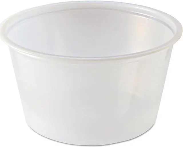 Ramekin-design portion cups allow you to elegantly present condiments and sauces with your to-go and carry-out orders. Thick polystyrene eliminates the potential for flavor and odor transfer. Smooth-rolled rims simplify dipping and pouring. Recessed, easy-stack lids (sold separately). Cup Type: Portion; Capacity (Volume): 4 oz; Material(s): Polystyrene; Color(s): Clear.