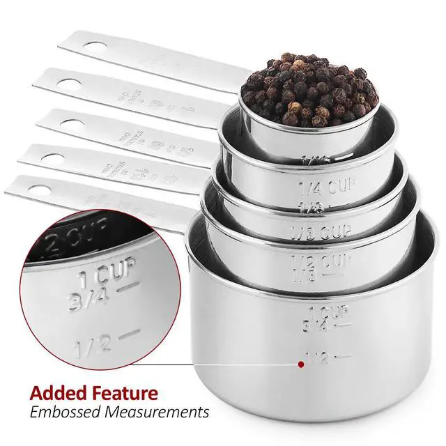 HIGH QUALITY DURABLE AND STURDY These Measuring Cups are made of highly satin brushed with best quality stainless steel which will never rust! They are durable and attractive looking, easy to clean, and can be placed in the dishwasher safely after using.