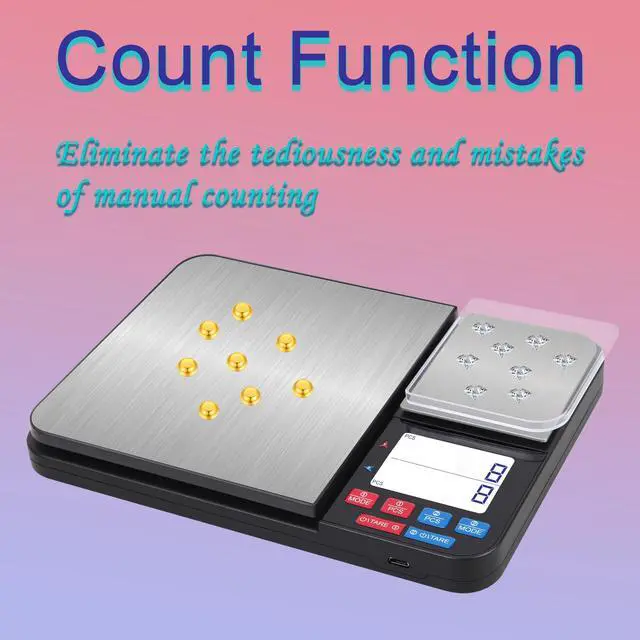 [ 0.01g High Precision and Powerful Function ] The built-in high quality sensor provides 0.01g accuracy and 0.05g~10kg measurement range. Powerful functions: tare function, unit conversion, counting function, overload function, automatic shutdown, Backlit LCD screen, etc.It can meet your measurement needs from large meat, food to small condiments, yeast, jewelry, etc.