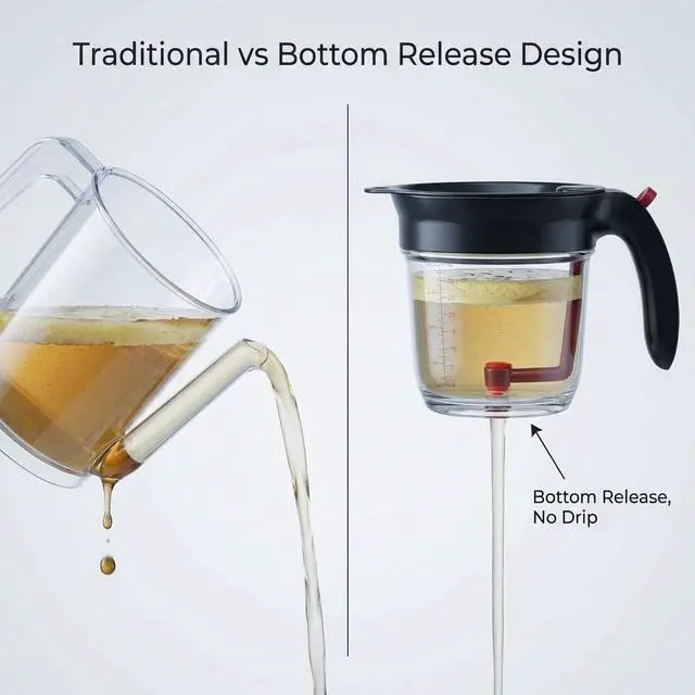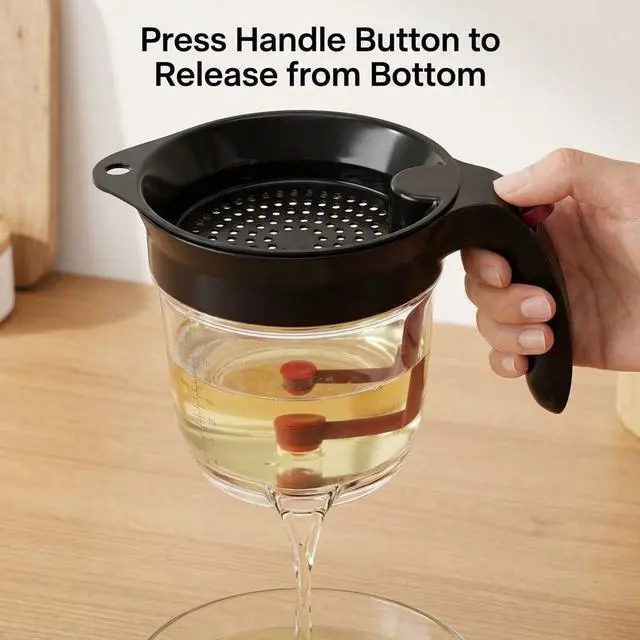 The silicone plug and large handle allow for precise control of liquid release, making it effortless to separate fat from gravy or sauce.