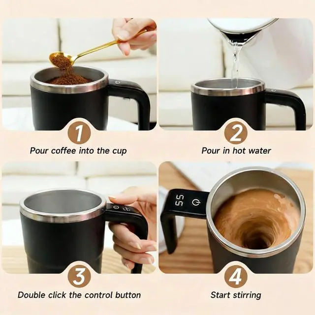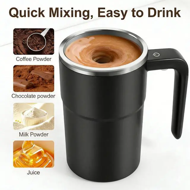 This smart automatic mixing cup blends coffee, protein powder, and other hot drinks evenly in just 20 seconds with a single presseliminating lumps and the hassle of cleaning mixing spoons