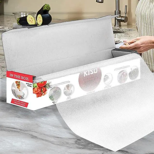 The BPA-free textured material is designed to protect knives and the pliable cutting board can be folded so you can easily transfer your food from the counter to the pan. Whether you're slicing salad veggies in your kitchen or making sandwiches in the RV the Ginsu Disposable Cutting Board will reduce mess protect your countertops and help prevent cross-contamination. The textured material won't dull knives and is flexible so you can easily transfer food. The easy-slide cutter lets you trim your board to the size you need. - Clear