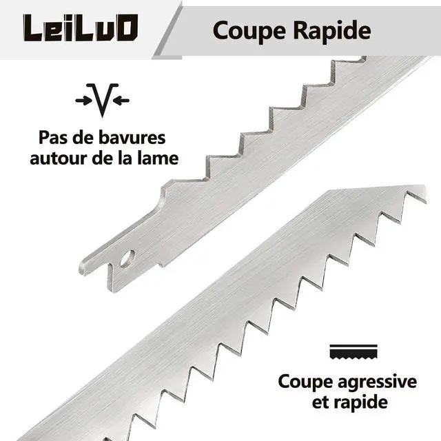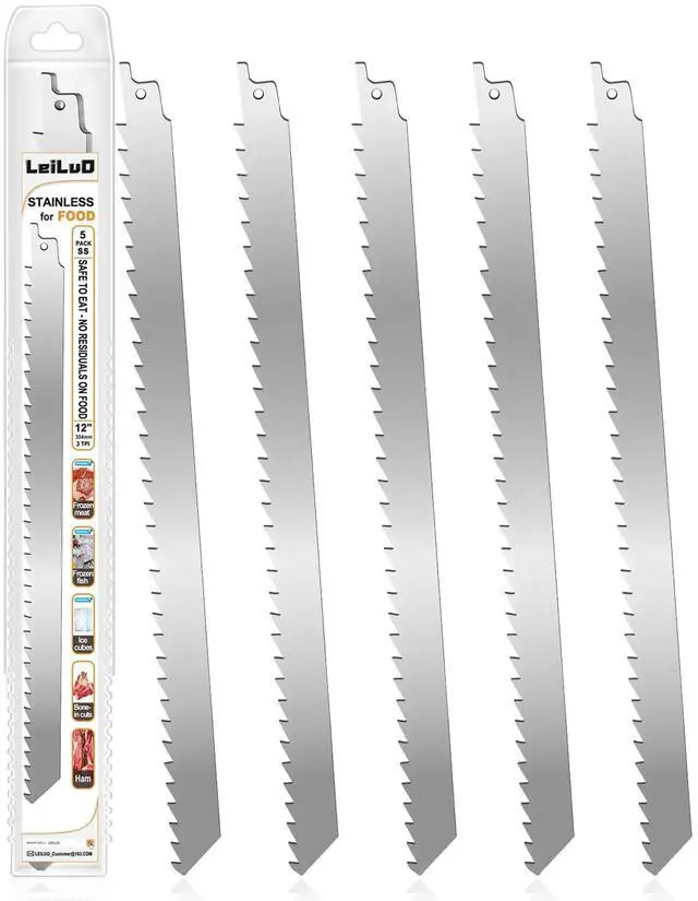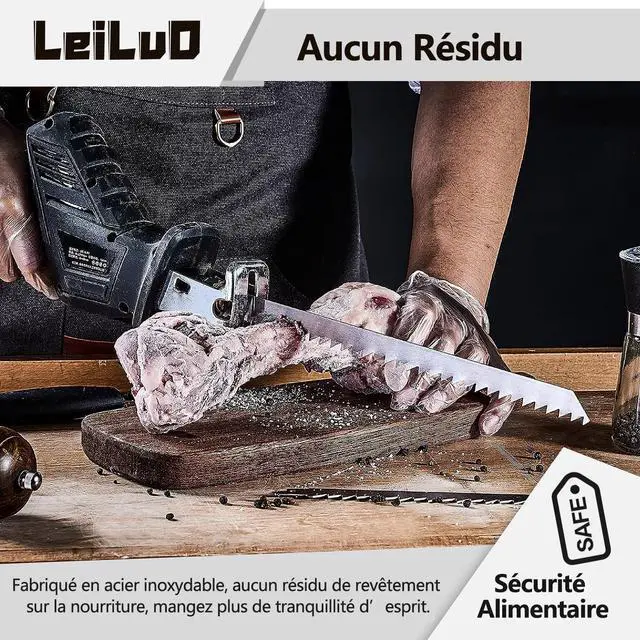 Food-Grade Stainless SteelLEILUO reciprocating saw blades are crafted from high-quality stainless steel, boasting exceptional rust resistance and a coating-free surface. This material ensures safety for direct food contact without any harmful residue, offering peace of mind in food handling.