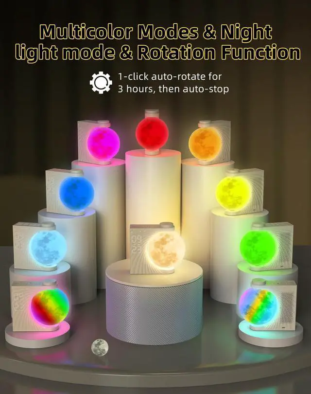| Included Components | Adapter, Auto-Rotating Moon Lamp Alarm Clock, Type-C Cable, User Manual |