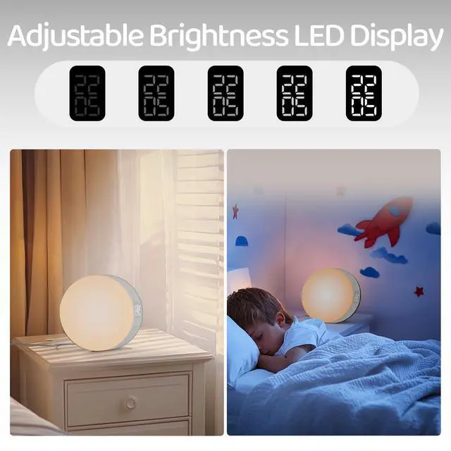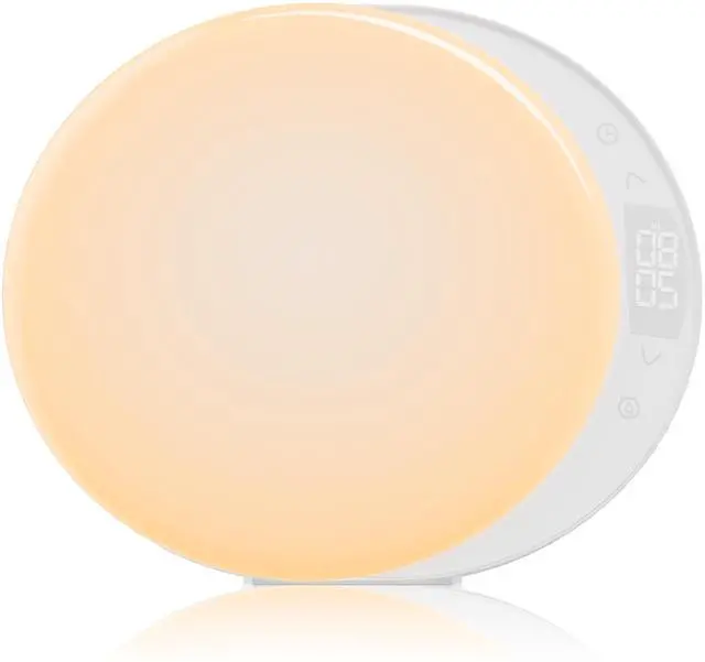 When the alarm is activated: the light will gradually change from the darkest to the brightness set by the alarm (1-20 levels) 30 minutes before the alarm setting time. When the light gradually brightens, the light color temperature will automatically change from 1700K-5200K incrementally. When the alarm time comes, the ringtone will change from minimum to maximum volume within 1 minute, and will automatically turn off after 20 minutes; (after the sound is turned off, the light will automatically turn off after a delay of 30 minutes)