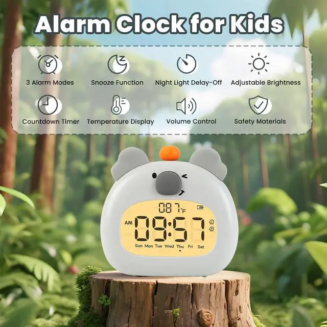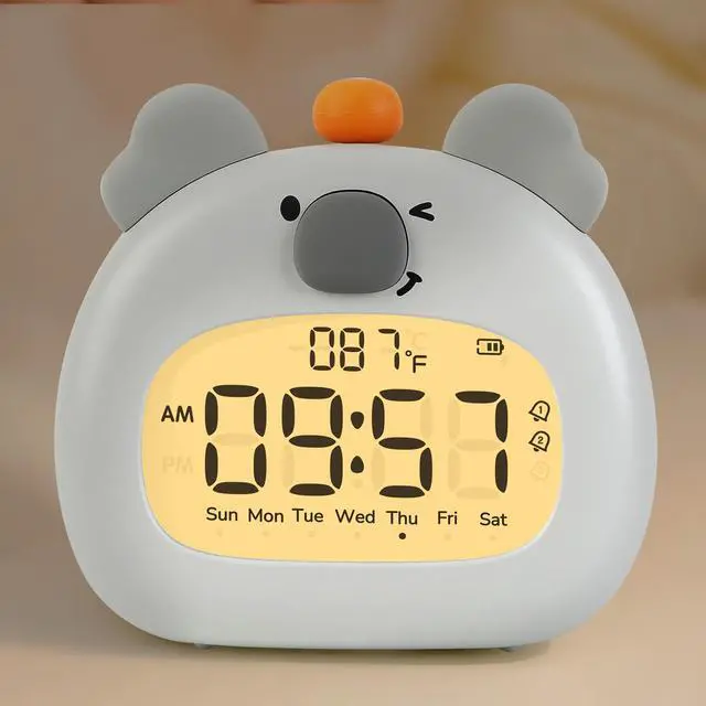 Koala Axolotl Alarm Clock with Night Light for Kids Cute Digital Sleep Trainer with LED Display, 3 Alarms, Countdown Timer, Adjustable Brightness Rechargeable Bedside Clock for Boys and Girls