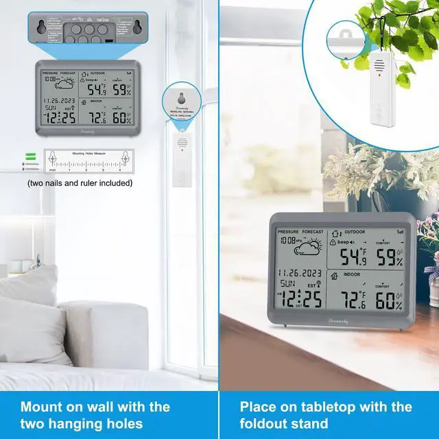 With this outdoor weather station, you can easily monitor the indoor/outdoor thermometer & humidity and the dew point, which helps you determine the most ideal times to get out or stay in. This digital weather clock makes a great addition to your home to stay informed about local weather conditions.