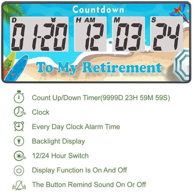 YOOREAL HM202Digital 9999 Days Countdown Timer, Every Day Clock Alarm Time,Count-up, Loud Alarms ,12/24 Hour Switch,Battery Replaceable, Magnet Adsorption, User Shutdown,Backlight Display (The backlight mode can be set to off) For Wedding Retirement Christmas Kitchen Study Vacation Lab Homework Exercise Gym Workout Sports Classroom Meeting Working Cooking.Within 2 years, the product failure support can be replaced at any time.