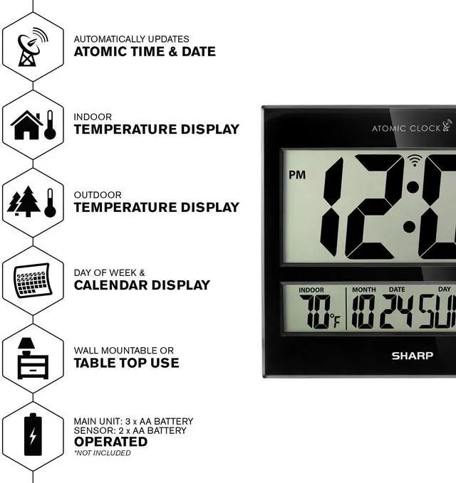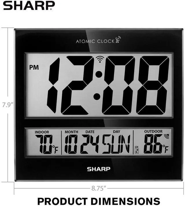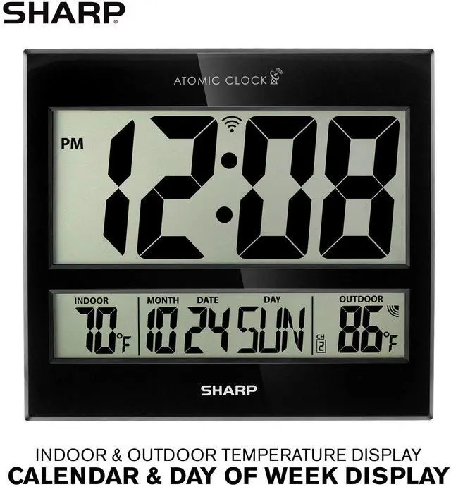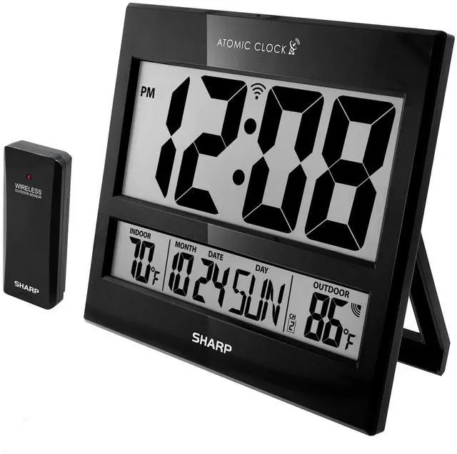 Easy to Read Sharp Atomic Clock with Indoor & Outdoor Temperature with Wireless Outdoor Sensor