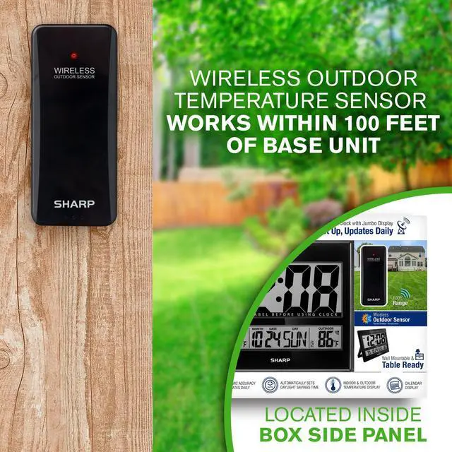 - The Wireless Sensor transmits the outdoor temperature to the Sharp Atomic Wall Clock. The sensor can be placed anywhere within 100 feet of the receiving unit. NO wire installation needed!