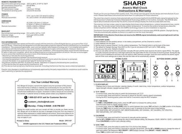 - The Sharp Atomic Clock (Model - SPC1107A) can be easily mounted to the wall or can be used on table top or desk with the built in stand.