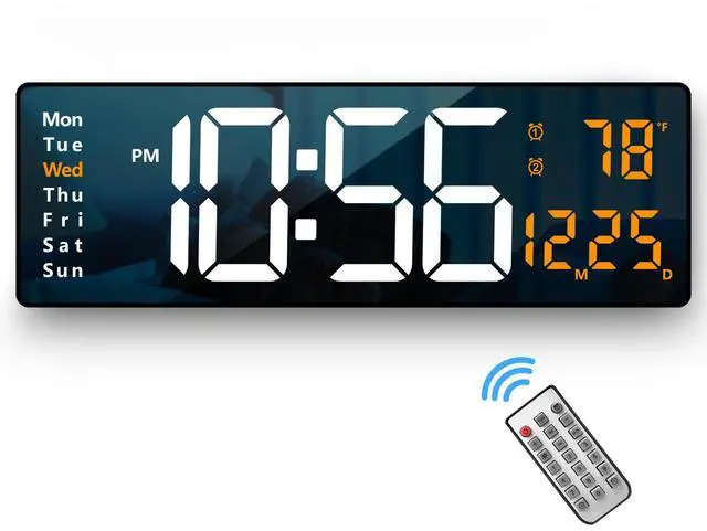Here are all the features that you might expect for a digital wall clock: Time, Date, Week, and Temperature.
