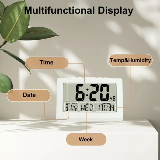 • 10 Inch LCD Display: In addition to a large and clear numerical time display, the digital clock also shows the seconds, date, day of the week, temperature and humidity at the same time, offering you more convenience in your daily life.