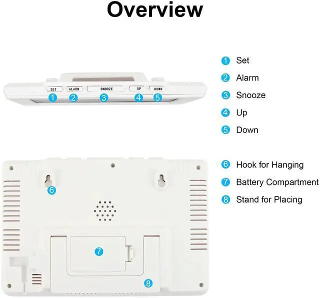 • Desk Clock & Wall Clock: Equipped with two durable hooks and a stand handle, this LCD clock large display can be used both on desk and hung on the wall.
