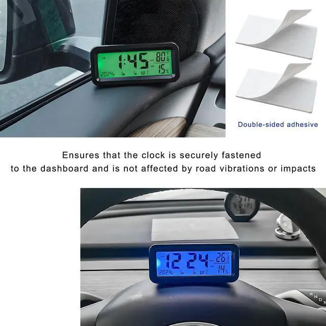 -The double-sided adhesive tapes ensure that the clock is securely fastened to the dashboard and is not affected by road vibrations or shocks