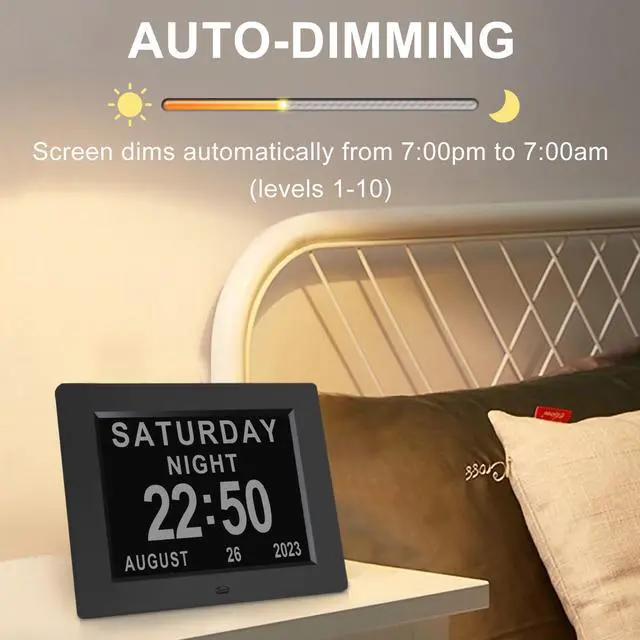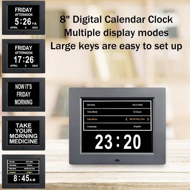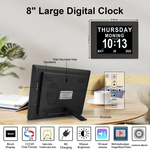 The digital clock is available in 7", 8", 9" and 10" screens to suit all needs.