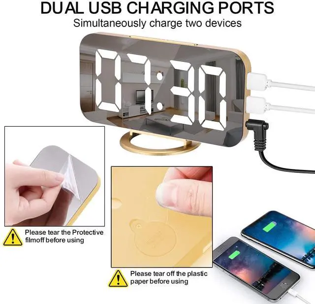 1. The alarm clock needs to be connected to a power cord (DC5V/1A) to display properly.