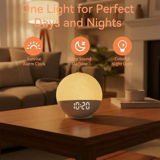 [Bedroom Essential] With its sleek design, this sunlight alarm clock blends seamlessly into any home decor. It's the perfect addition for improving sleep quality and makes an ideal gift for anyone who appreciates a natural, peaceful wake-up experience.