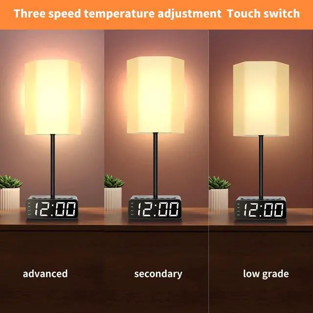 - Table Lamp touch control 3-way dimmable, and Charging Station with USB C & A, AC Ports, and Dual alarm clock, and Speakers