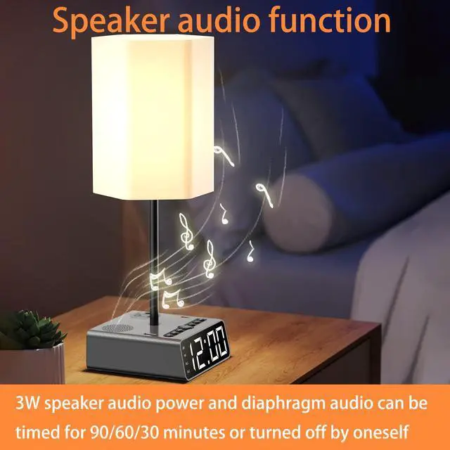 - 5-IN-1 Table Lamp combines with bedroom essentials all together- Bedside Lamp, Bedside charging station, Alarm clock, Speakers and Radio.