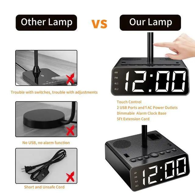 ![]() Table Lamp with Desk Charging Station | ![]() Dual Alarm Clock with Desk Charging Station Wireless Charging | ![]() Dual Alarm Clock with Desk Charging Station | |
