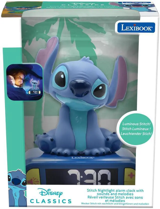 With its cute Stitch figurine, it is the cutest alarm clock for all Stitch fans! A nice companion to fall asleep and wake up with, but also a beautiful decoration for the kids' room!