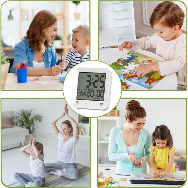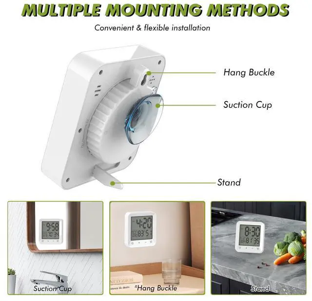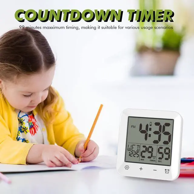 The water-resistant bathroom clock timer can match a variety of home styles, it can be used to place in bedroom, living room, studying room, office, kid's room, dorm room or kitchen.