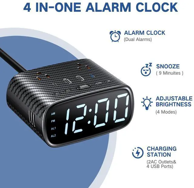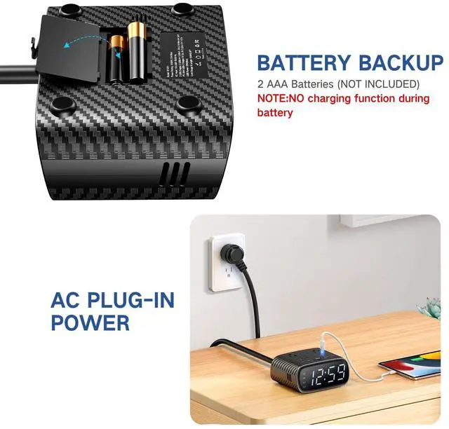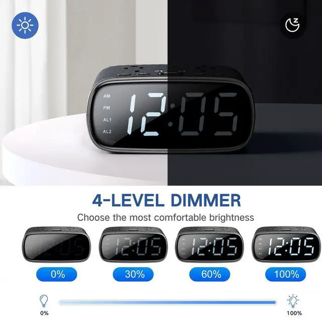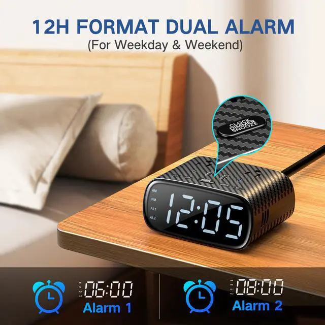 There is designed with two alarms that one alarm wake you at work days and another will wake you at weekend days.Acrroding to diffrent days, this alarm clocks for bedrooms function is able to easily achieve two modes switching.