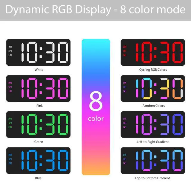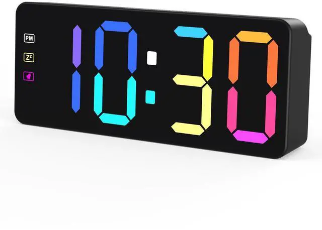 Alarm Clock with Battery Backup - 8 RGB Color, Snooze, Outage Protection, 3-Level Dimmer, Outlet Powered (Adapter Included), Digital Clock for Bedroom, Bedside, Desk