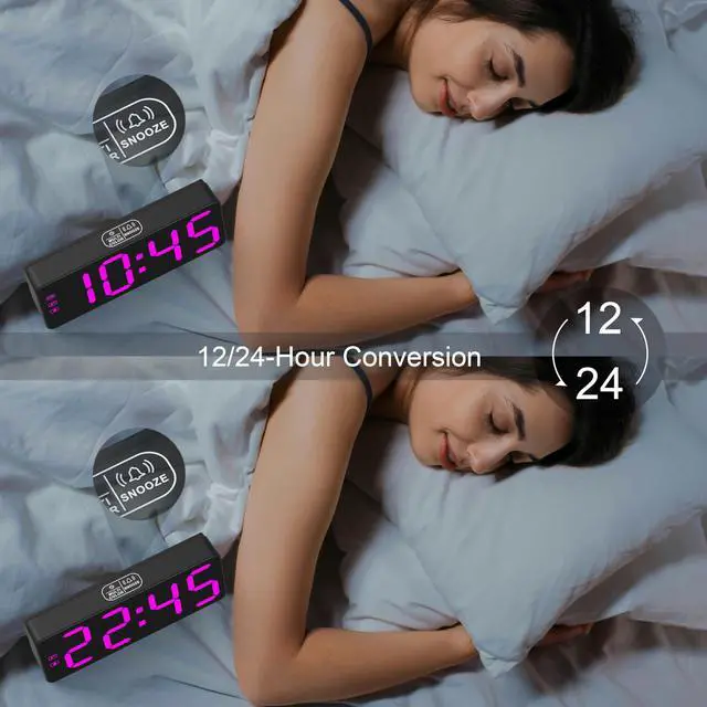 SMART SNOOZE & RELIABLE ALARM Wake up on your terms. The alarm sounds clearly and can be toggled on/off with a dedicated button. Enjoy a 7-minute snooze (repeatable up to 3 times) and the option to permanently disable snooze by holding the DOWN button. The alarm auto-stops after 2 minutes and resets for the next day.