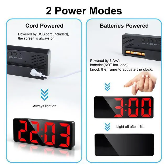 When powered by batteries, knock the clock to light on the screen for 16s.
