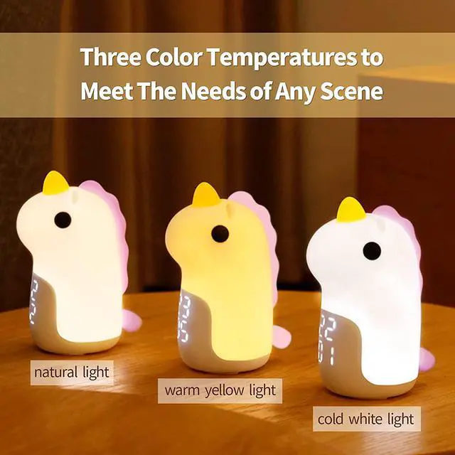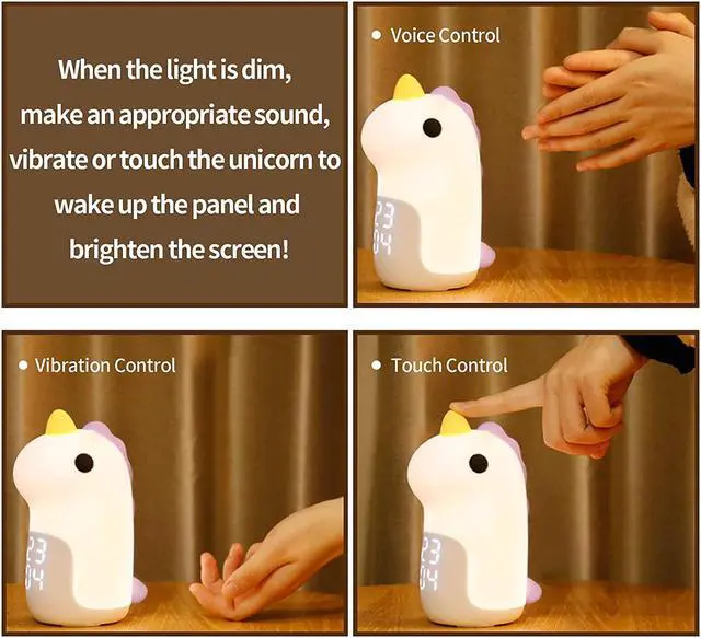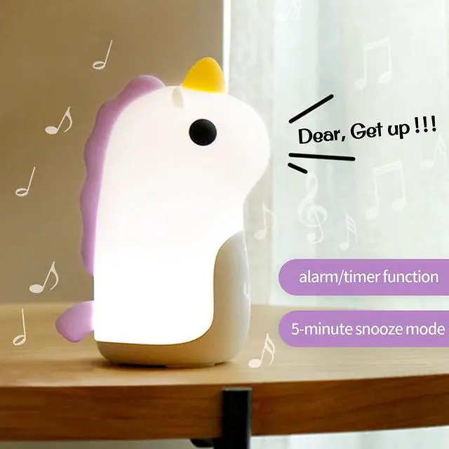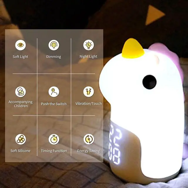 It can be charged through the Type-C interface, and in low light mode, this children's alarm clock can stand by for 168 hours. Fashionable Decorative DesignThis is the most exquisite alarm clock you have ever seen. It is not only a clock, but also a great decoration for your room. Its elegant appearance and multiple functions make it an ideal gift for children. [BEST CHOICE FOR KIDS GIFTS] This kids alarm clock is made of BPA-free silicone, which is comfortable to touch and 100% safe for your kids. This kids alarm clock features a cute unicorn design that can be a decoration in your kid's room.