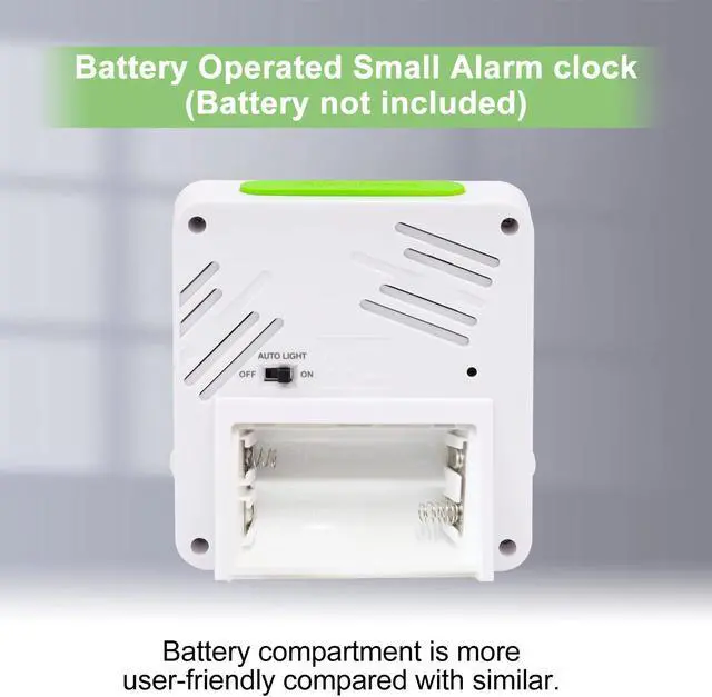 Two Backlight ModesThe small digital clock features Auto light function and 8s backlight. When it is in darkness, it triggers a soft nightlight to illuminate the display automatically after the switch is flipped to "ON". When you togged the night light to "OFF", tap the top button to turn on the soft, orange backlight and it will stay on for 8 seconds