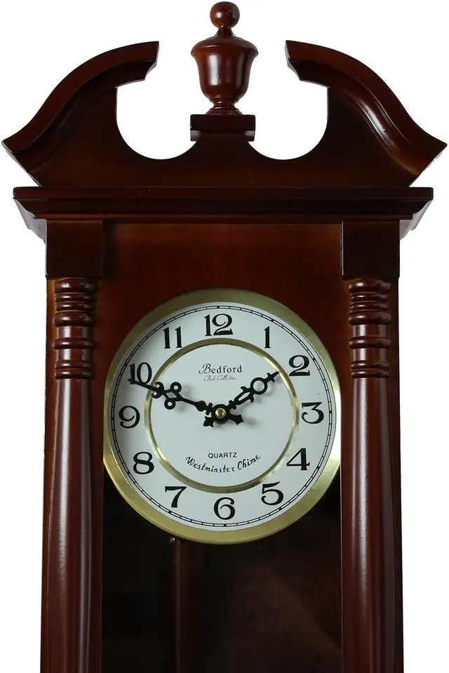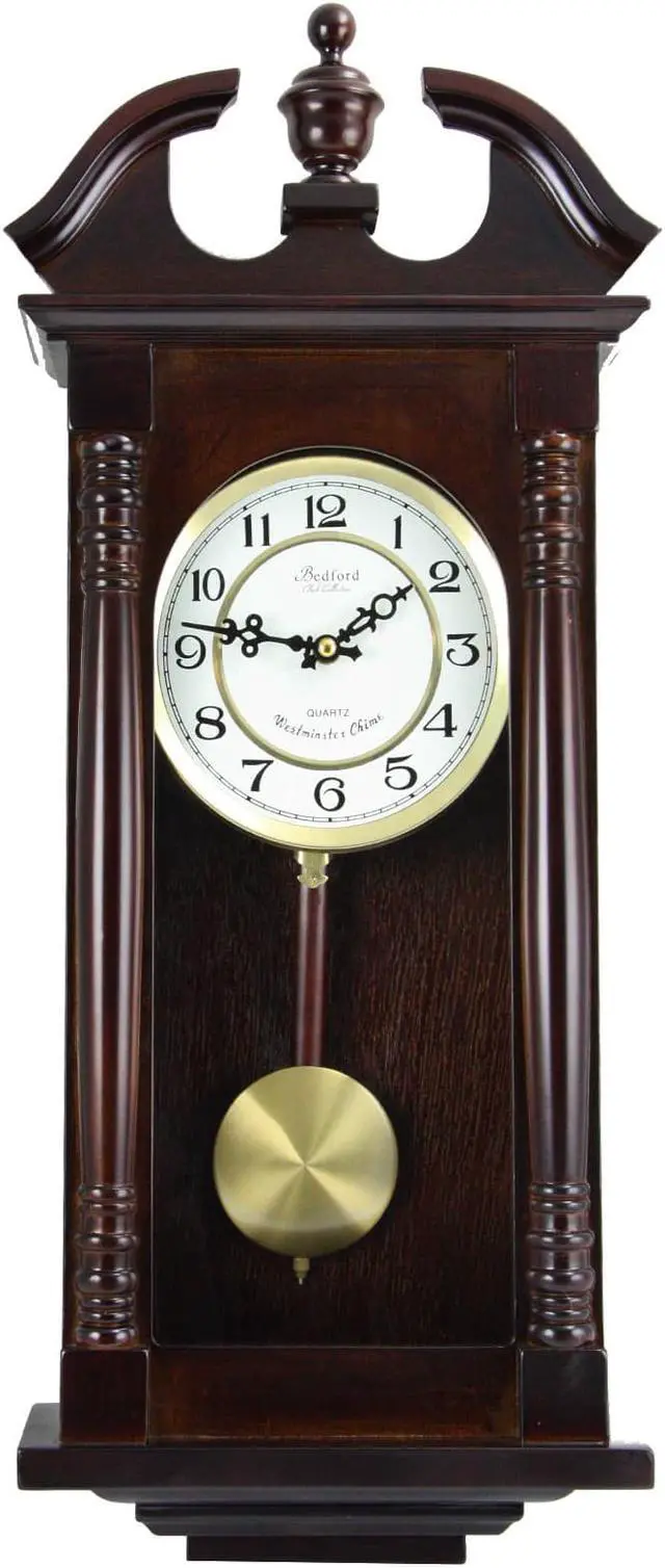 Bedford Clock Collection Classic Chiming Wall Clock With Swinging Pendulum