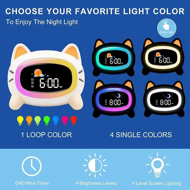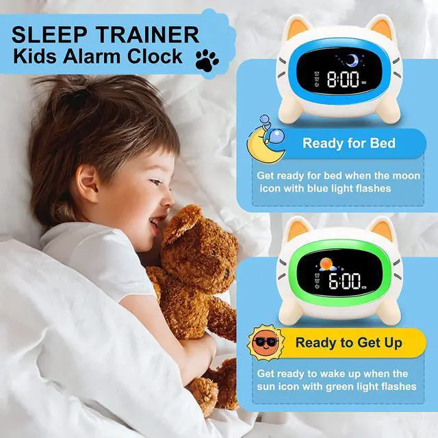 Conquer naughty children-Does your child still don't understand what time is? The cute sleep training clock contains icons and colored lights that will effectively help your toddler know when it's time to get up, play or go to sleep. It will free parents from sleepless nights and allow children to become more independent.