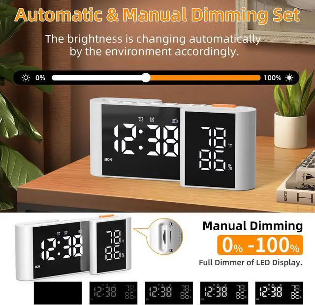 Alarm Setting and Snooze Setting: Two independent alarms can be set up with different work modes, you can freely set the heavy snooze time on 5-90 minutes, there are 5 levels of alarm volume.