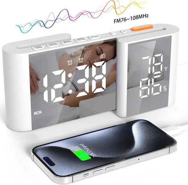 FM Radio and USB Charge Port: FM radio saves up to 70 stations from FM76MHz-108MHz, suitable for use in most area of the world, the alarm clock provides 1 USB port for charging your devices, the pack contains a powerful USB adapter and 60 inches length Type-c cable.