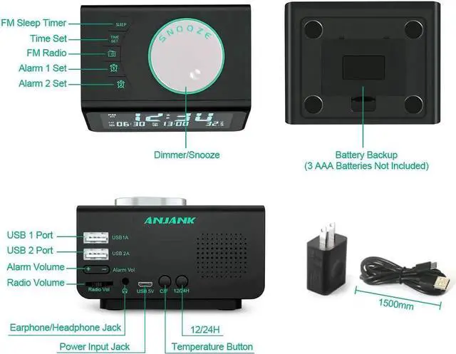 When only powered by 3 AAA batteries, to power energy saving, screen only light up for 10 seconds then dim, can not charge other devices and the brightness is not adjustable, but other functions are still works, so we suggest you use the main supply to power the desk clock if you need these features.