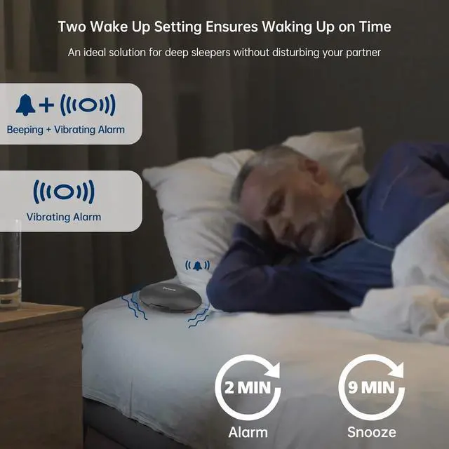 A Decent and Useful Gift for Everyone: if yourself, your family, friends or your loved is a deep sleepers or can' t rely on beeping alarm to wake up, our vibrating alarm clock is your solutions! The vibrating alarm clock can be a perfect gift for birthday, Father' s Day, Mother' s Day, Thanksgiving Day, Christmas, Back to School.