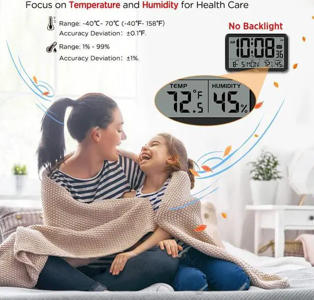 Digital Wall Clock with Temperature and Humidity - These digital wall clocks are equipped with Swiss high precision SHTC3 detection sensors, help you master the most accurate indoor temperature and humidity and create the most comfortable indoor environment.